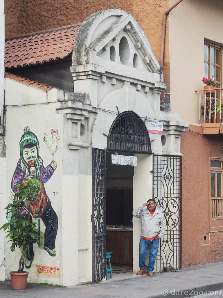 Juergen loves to photograph street art. After the lack of it in Peru, he was really pleased to find it again in Ecuador. Cuenca had some interesting pieces to show us.