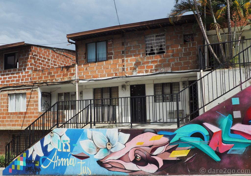 - ‘Desarma Tus’ – Disarm you(rself) – a clear message, right at the entrance of Comuna 13.