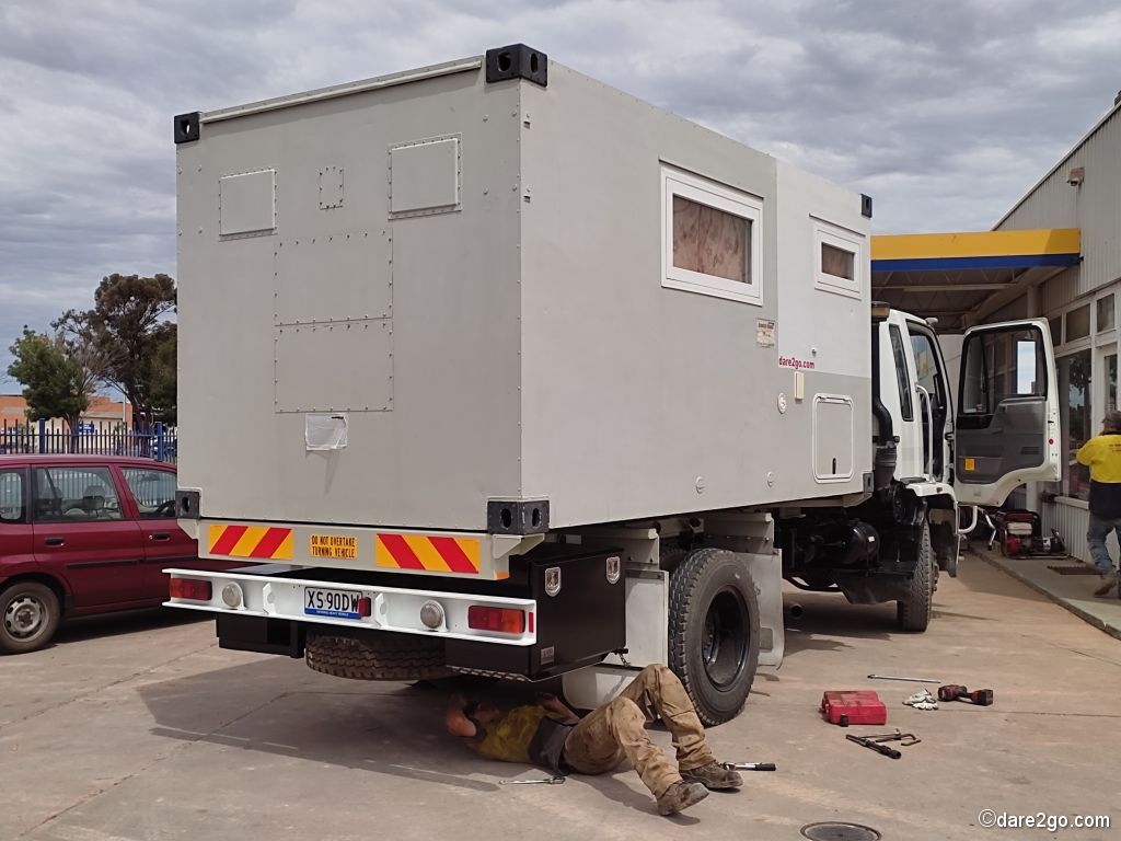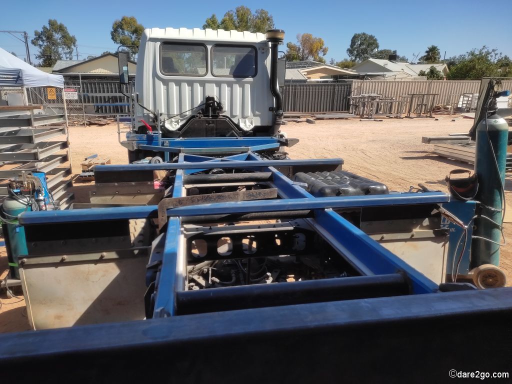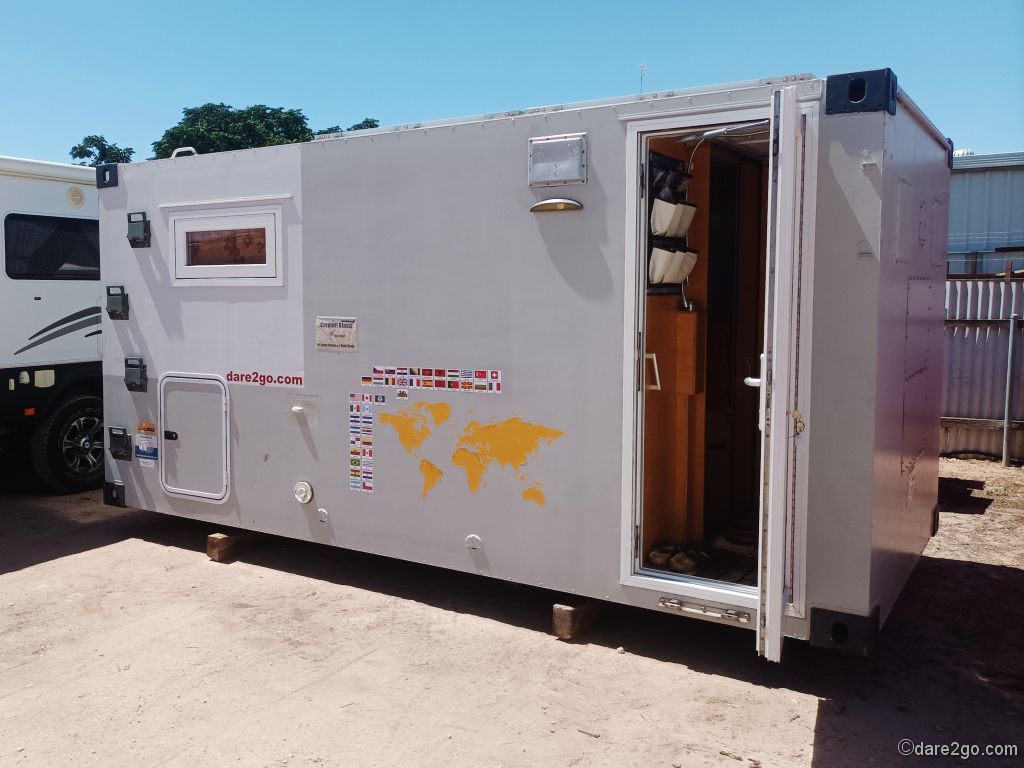 Jeff from JCK had been hesitant to finalise our frame until he had the box in his yard to cross-check the position of the container locks, even though I had given him the technical drawings of our Zeppelin shelter. On the other hand, he needed it out of his workshop, because in the Riverland the wine harvest was about to start – his busiest time of year.