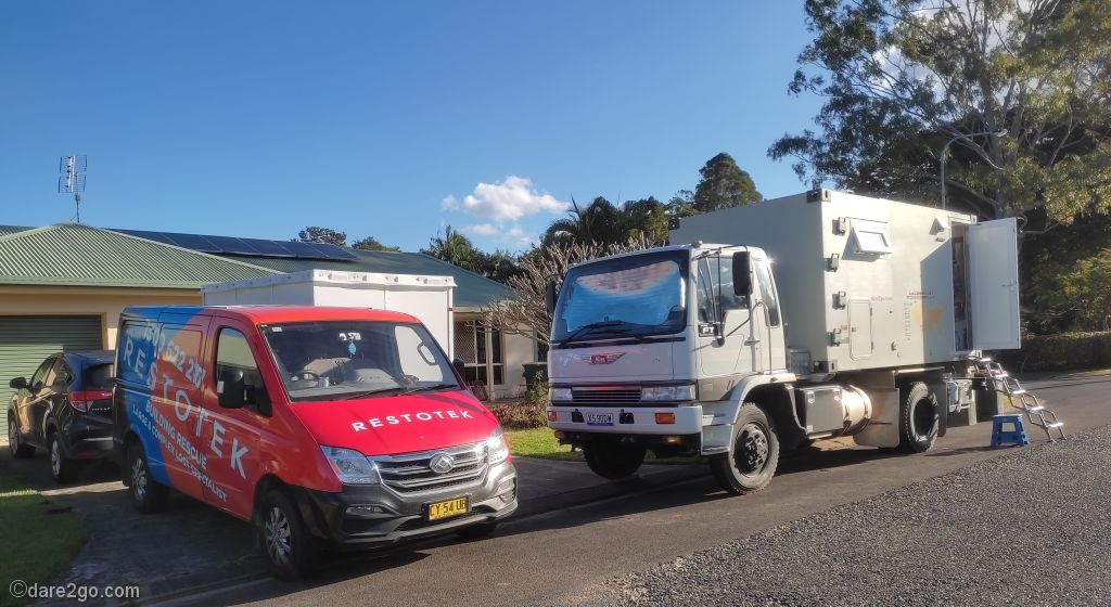 Except that once we reached Mullumbimby, the trip was already over. A builder had already been assigned by the insurance company and he came to meet us to discuss the process of repair. When asked, he told us “6-10 weeks and all should be fixed”. Relief! (It turned out this was the biggest lie on the planet…)