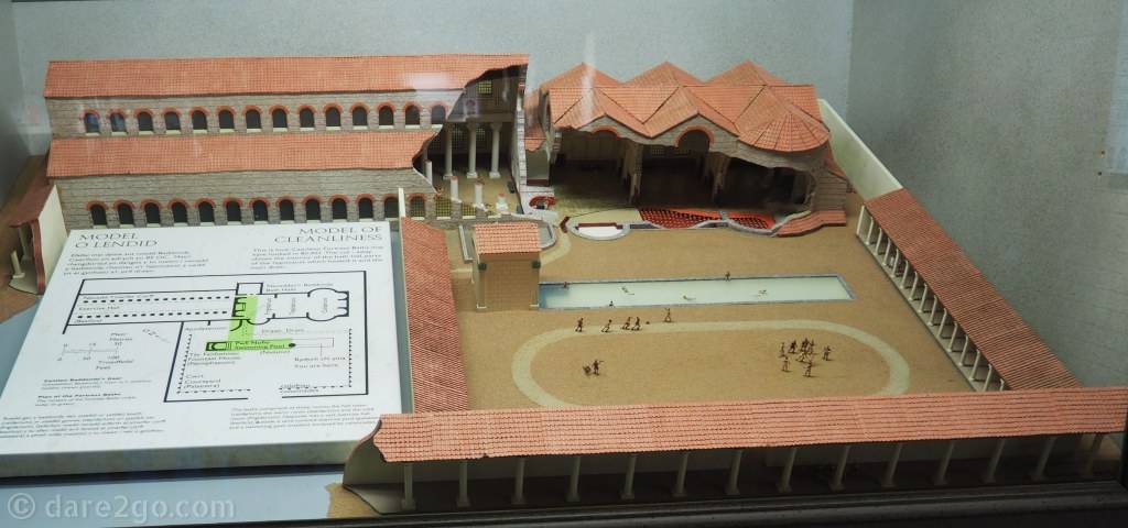 - Caerleon Roman Fortress & Baths: this is a model of how the baths may have looked. There were areas for physical fitness training, as well as the bathing area.