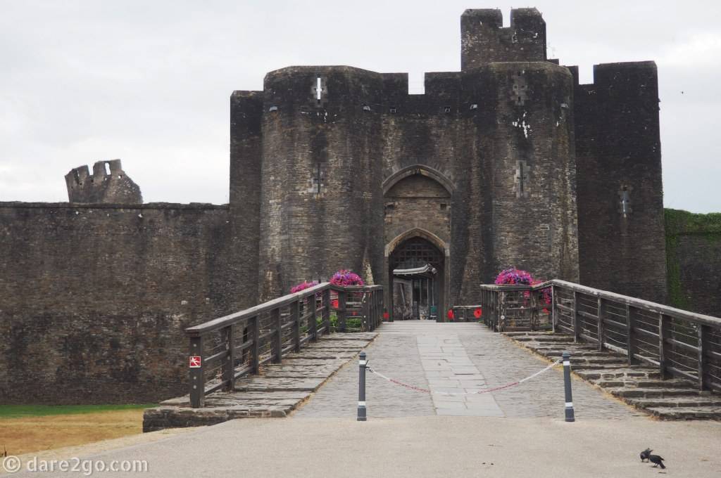 - Caerphilly Castle: The main entrance gate through the outer wall, after crossing the water that surrounds the castle.
