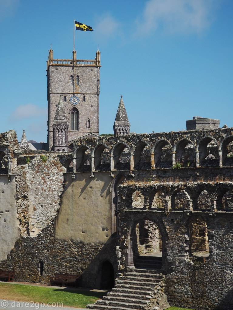 St David’s Cathedral in the foreground and the ruin of the Bishop’s Palace behind; an important part of the diverse religious history of Wales.