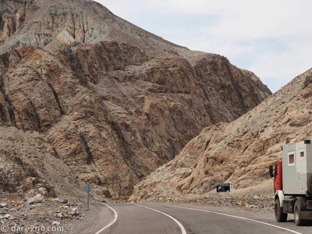 We arrived at the Chilean border post just before 5pm (closing time) and went through the exit process. At around 2000m it is almost 100Km before the actual border which is at the top of the pass. We continued on another 20Km to a level sleeping place recommended to us. The scenery past the border post kept producing gasps of surprise and groans of wonder as we drove on. These 20 Km were even more amazing than those before – we were certainly looking forward to continuing this journey, and hoping that the altitude wouldn’t defeat us.