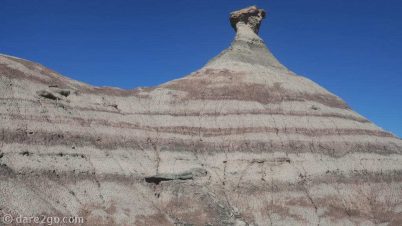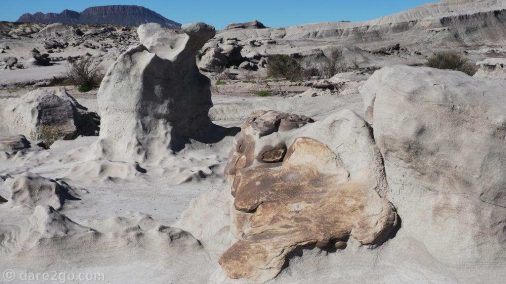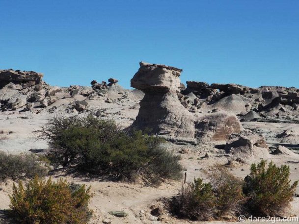 Ischigualasto Provincial Park is also called “Valle de la Luna” [Moon Valley], this being one out of three in South America. We have visited “Valle de la Luna” near San Pedro de Atacama in Chile before, the third is in Bolivia (a future destination of dare2go). To me the one in Chile looks more moon-like because there the high salt content in the ground prevents any vegetation from growing.